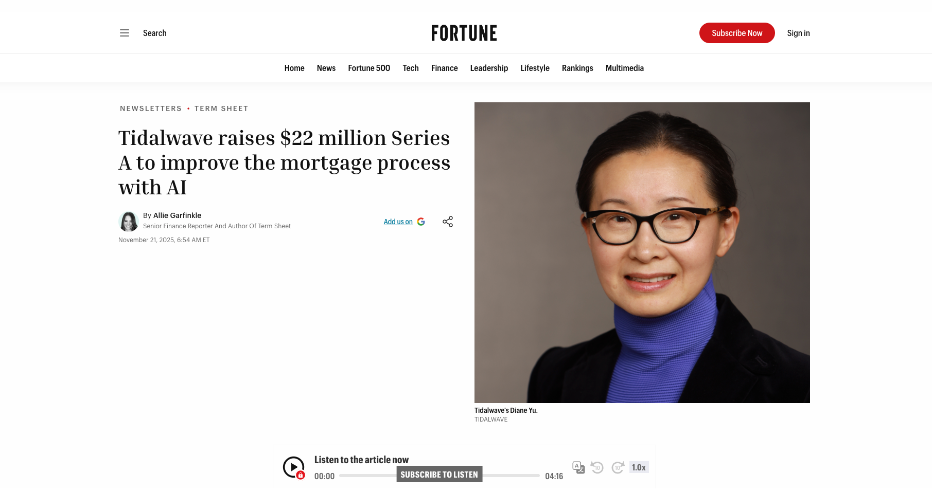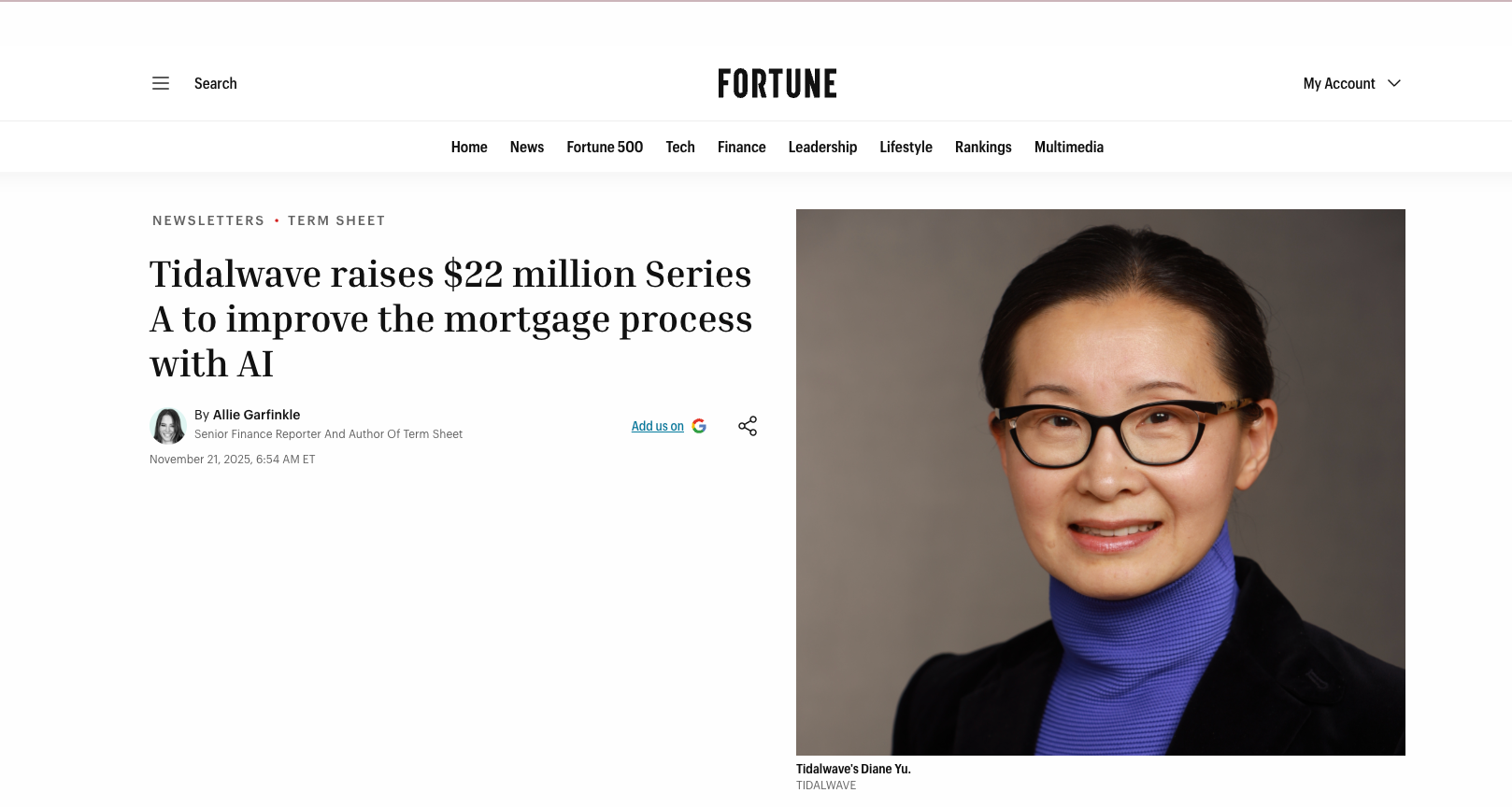 We are a team of 2X successful exit visionaries. Co‑Founder & CEO Diane Yu is a builder, founding FreeWheel, an Adtech platform sold to Comcast in 2014 for $375M. Along with her 2 other Co‑Founders who played crucial engineering roles at both FreeWheel and Better.com, the team is heavily experienced in the mortgage space.
